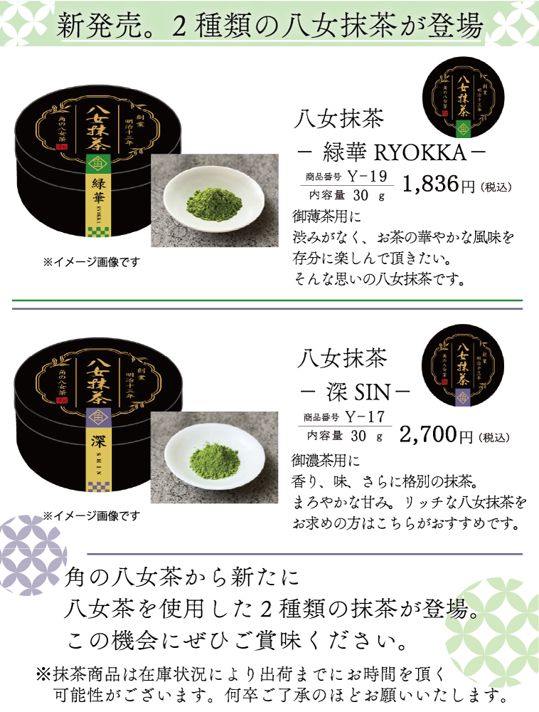 角の八女茶から新しい抹茶商品が登場です。