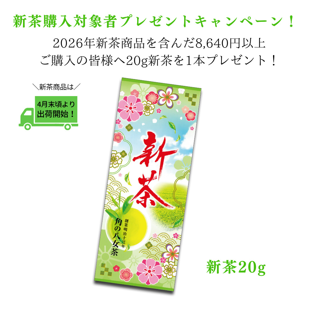 日時のご指定をいただきましても、ご希望に沿えませんのでご注意くださいませ。※ご希望の組み合わせがない場合は大変恐れ入りますが角の八女茶までご一報くださいますと幸いでございます。